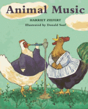 An assortment of animals playing various instruments make different kinds of music.