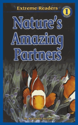 Simple text and color photos present several pairs of living things that work together to survive, including the clown fish and sea anemone, pitcher plant and tree frog, and others.