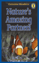 Simple text and color photos present several pairs of living things that work together to survive, including the clown fish and sea anemone, pitcher plant and tree frog, and others.